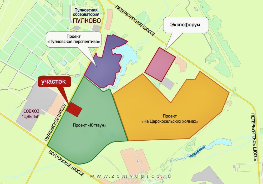 В непосредственной близости от земельного участка реализуется проект КОТ «На Царскосельских холмах», предусматривающий строительство: