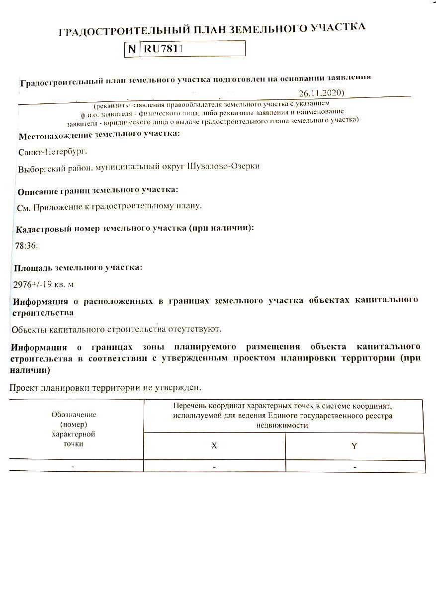В соответствии с ГПЗУ (2020) для земельного участка установлены: