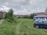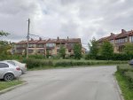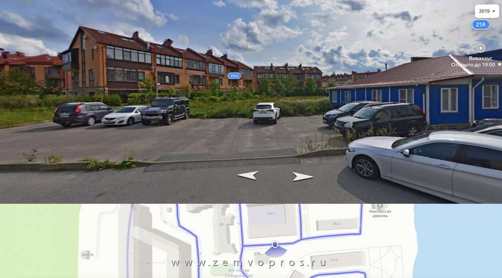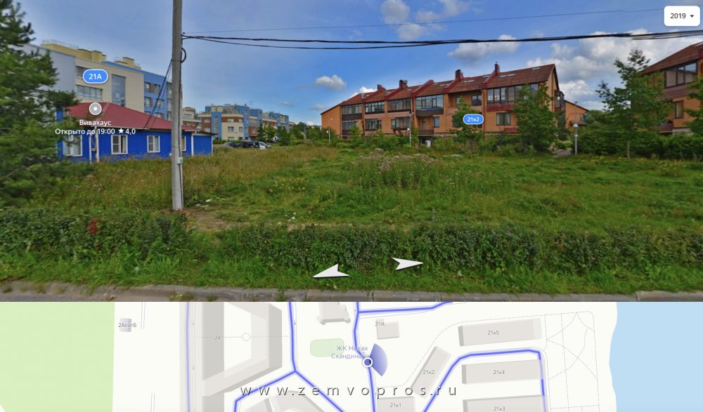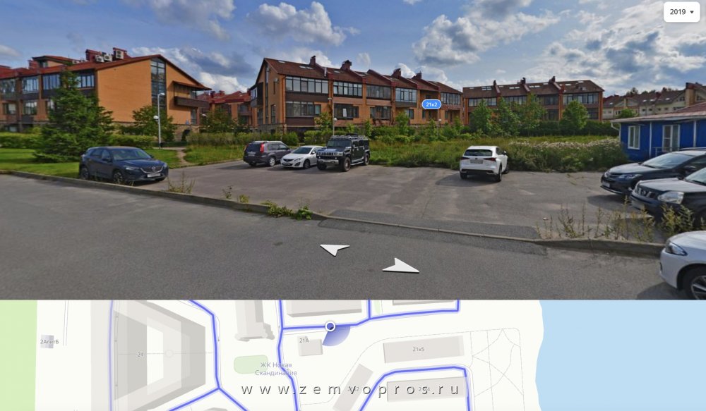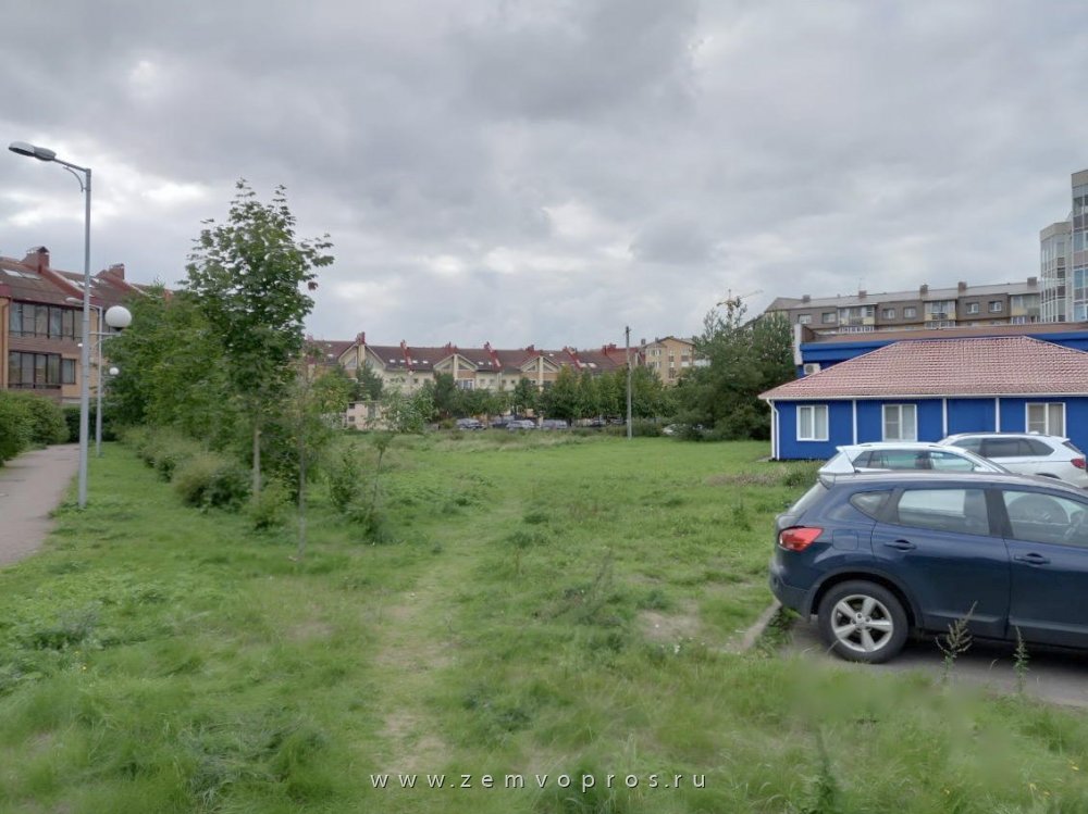 - На территории ЗУ – временное здание бывшего отдела продаж жилья в малоэтажном ЖК «Новая Скандинавия».