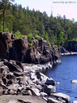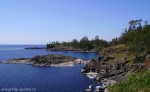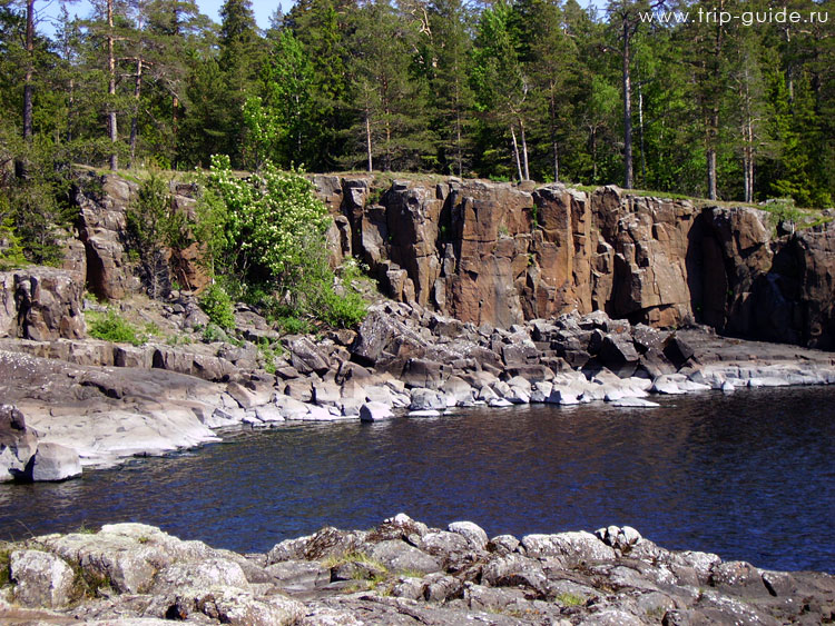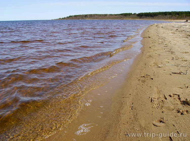 Шхерный район Приладожья начинается уже в 8 км к северу от Приозерска и уходит в соседнюю Карелию. К югу побережье Ладоги совсем иное -мелководное, с дюнами и песчаными пляжами, к которым вплотную подступают леса.