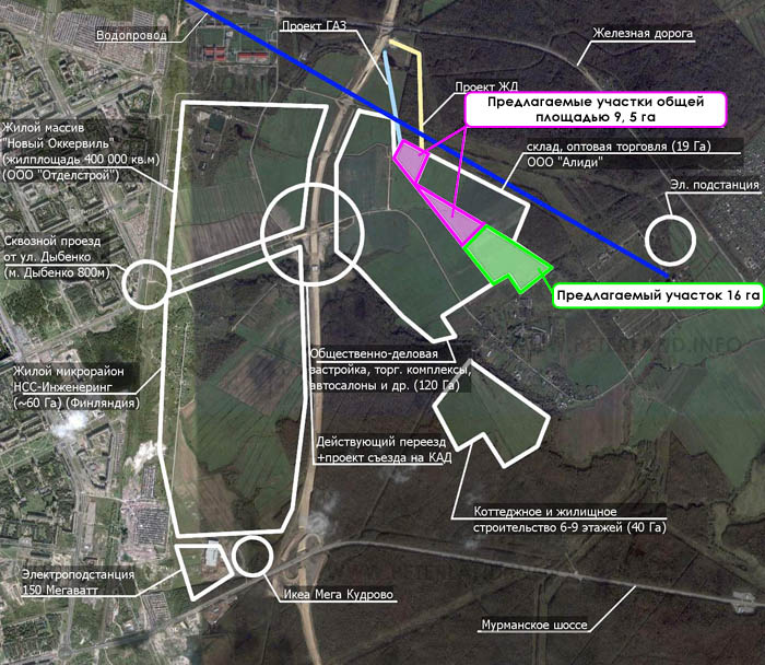 Земельные участки для размещения объектов логистики и площадью 4.5 га,5га, 16га (с возможностью выделения от 2га) в районе Заневка-Кудрово-Новосергиевка.