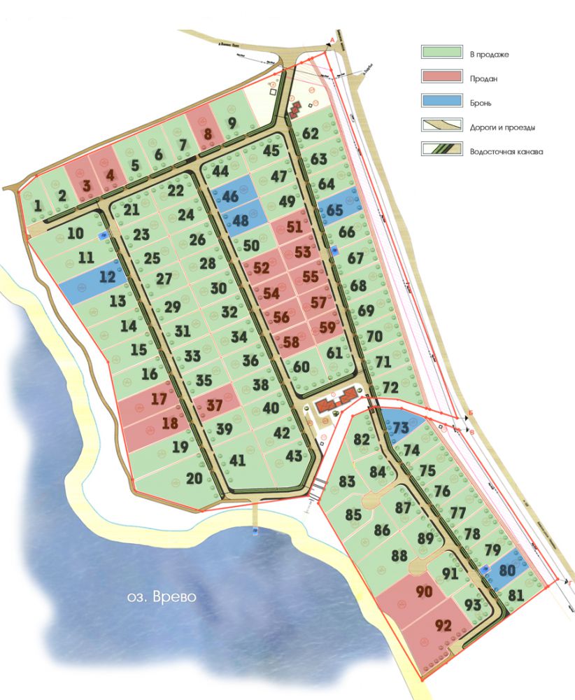 - Достойное окружение: берег озера Врево сегодня это спокойное место для владельцев загородных коттеджей, развитый город Луга находится в 8 км, крупный населенный пункт Скреблово в 1 км от поселка.Собственность