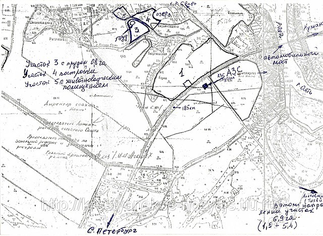 - Земельный участок площадью 6,9 га (1,6 га+ 1,5 га+3,8 га)