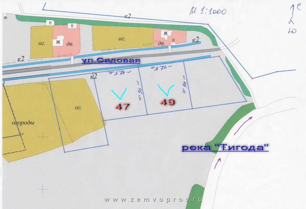 - Собственный выход к реке от участка (100 - 150 метров - до берега реки Тигода).