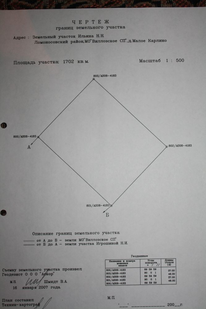 - Участок размерами 37м х 46 м . Короткой стороной участок выходит на подъездную дорогу.