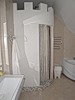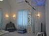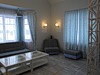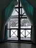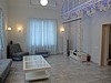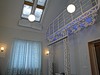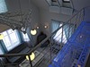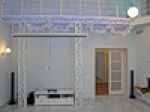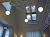 В гостиной организован второй свет (отсутствуют перекрытия между 1-ым и 2-ым этажом). Это решение отняло у дома одну комнату и вместо 235м2 он имеет 210м2, но это оправдано высотой потолка, большим колличеством света, воздуха и общим ощущением свободы. Над гостиной слегка нависает стеклянная светящаяся балюстрада. В кровле над гостиной сформирован фонарь из четырёх окон.