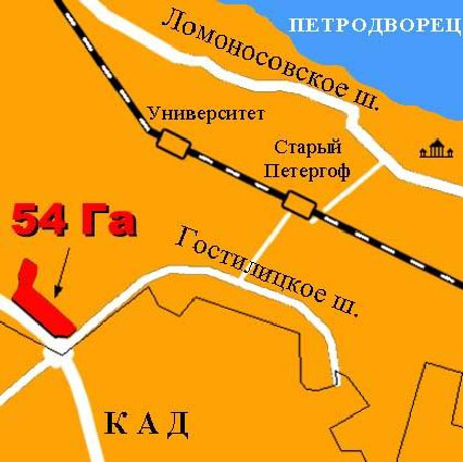 Земельный участок площадью 54 га расположен в Петродворцовом районе города Санкт-Петербурга.