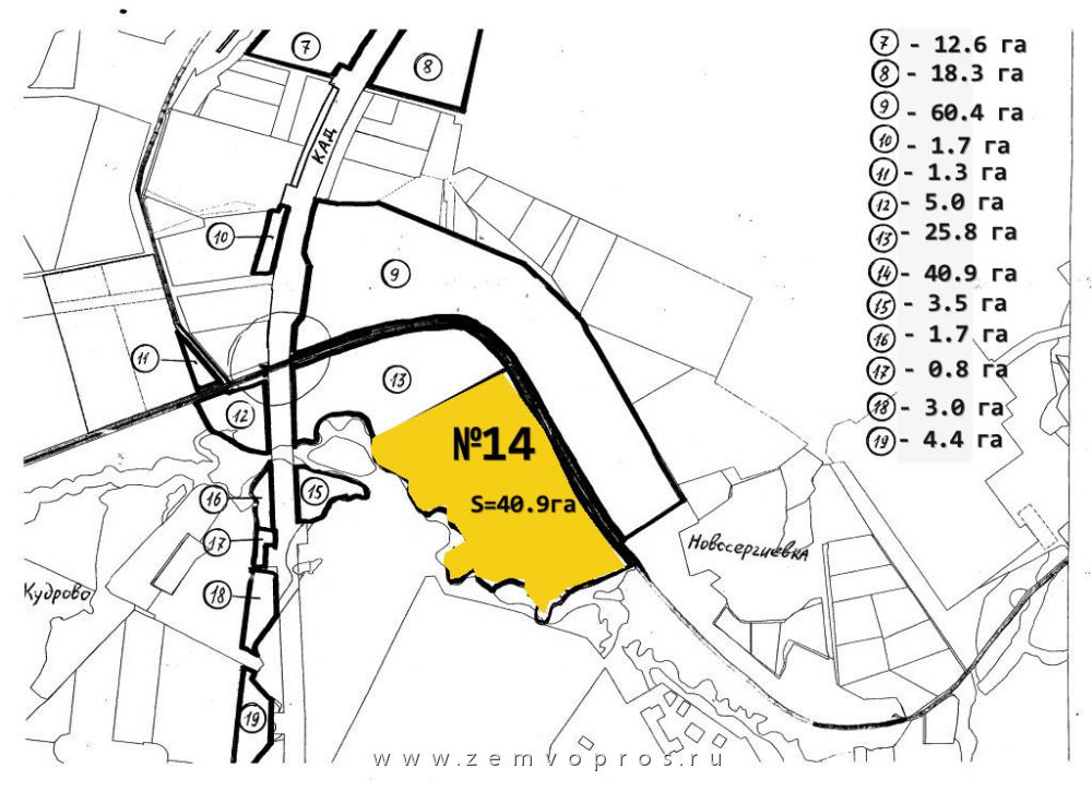 - Участок № 14 ( см. схему). Площадь 40.9 Га.