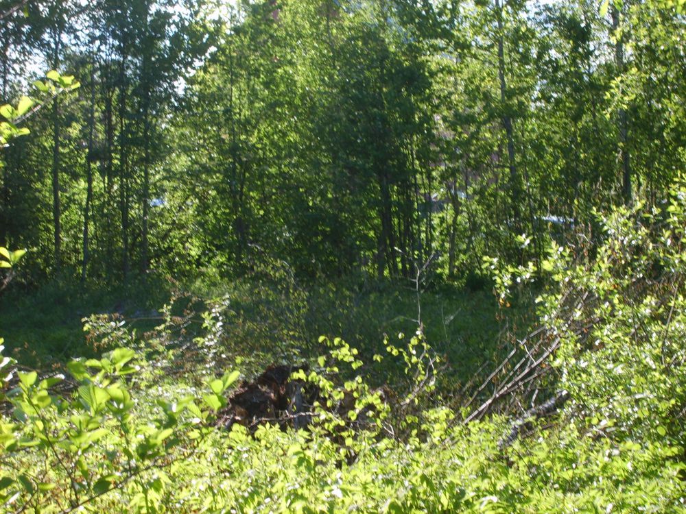 - По периметру участка - берёзы, сосны, лиственный лес. Напротив (через дорогу) лес.