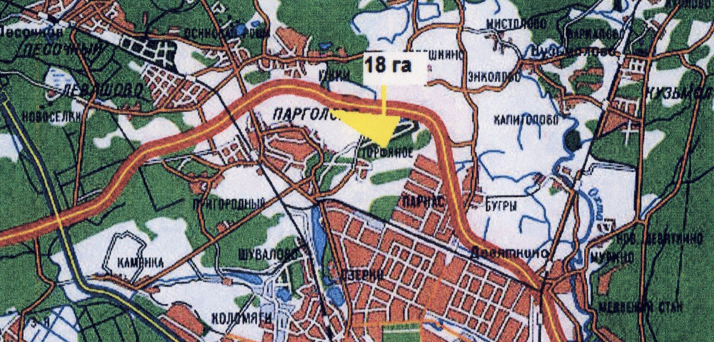 Крупный земельный участок вдоль Петербургской Кольцевой автодороги в районе промзоны Парнас