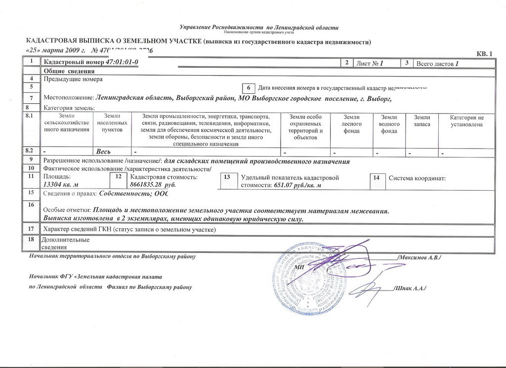 Комплекс производственных зданий на земельном участке площадью 1.33 га в Выборге.