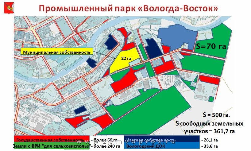 Территория земельного массива включена в границы промышленного парка "Вологда-Восток".