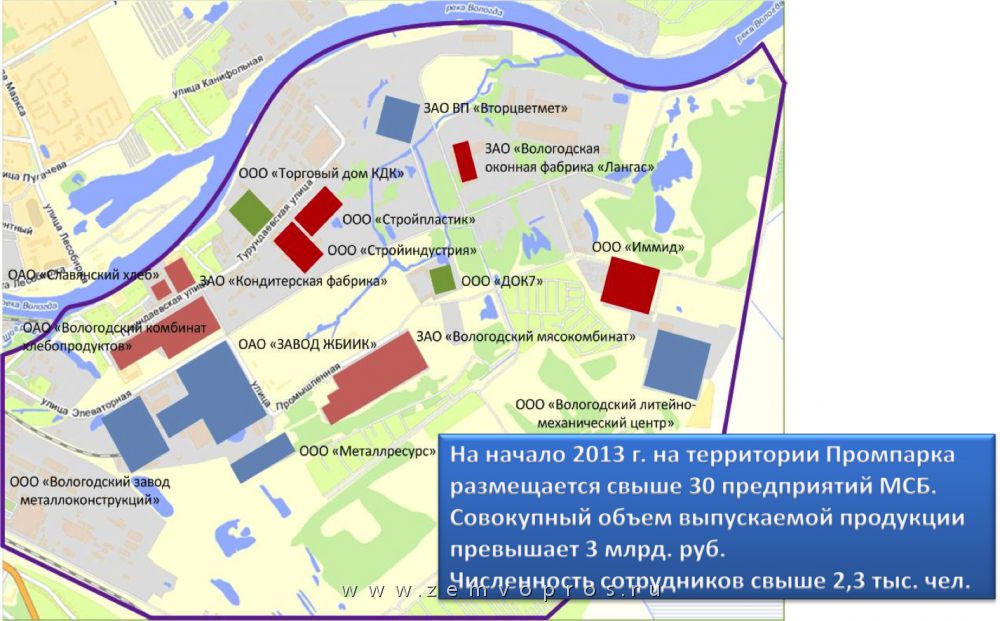 - Промышленный парк расположен в черте города Вологды (4 км на восток от железнодорожной станции Вологда-1).