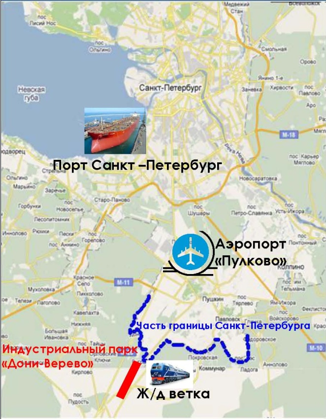 Земельные участки промназначения площадью от 3 до 50 га в Индустриальном парке «Дони-Верево» в Гатчинском районе.