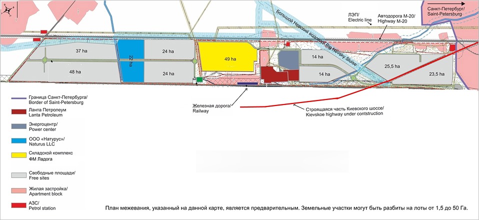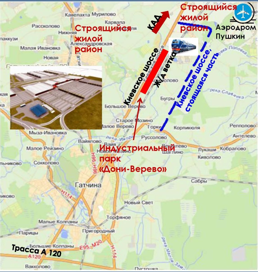 - Территория Индустриального парка расположена на 1-й линии Киевского шоссе.