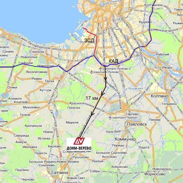 20 км. (указано расстояние до КАД Санкт-Петербурга по прямой).