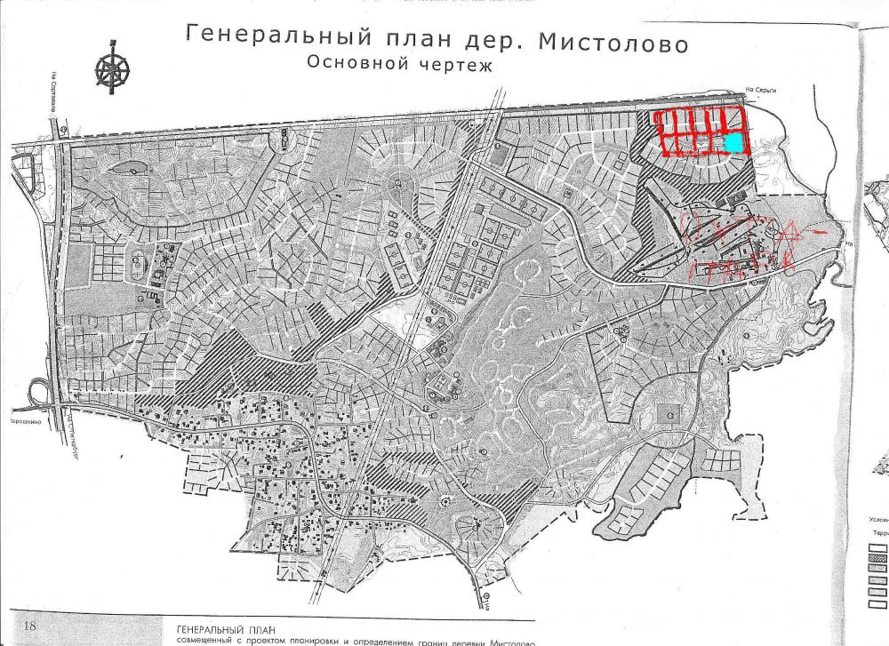 - Расположение участка на генплане (см. Генеральный план деревни Мистолово):