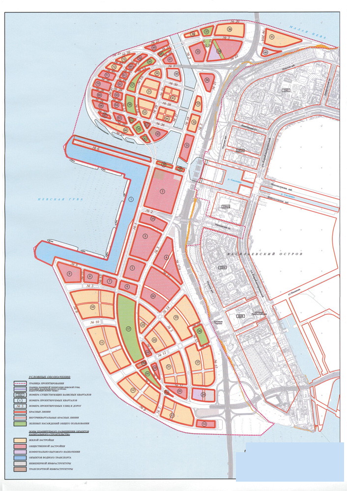 Земельные участки для размещения объектов жилой и общественно-деловой застройки в составе проекта "Морской фасад" в Василеостровском районе Санкт-Петербурга