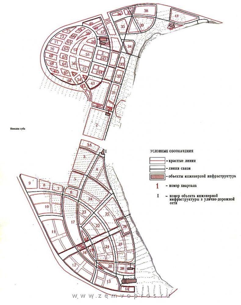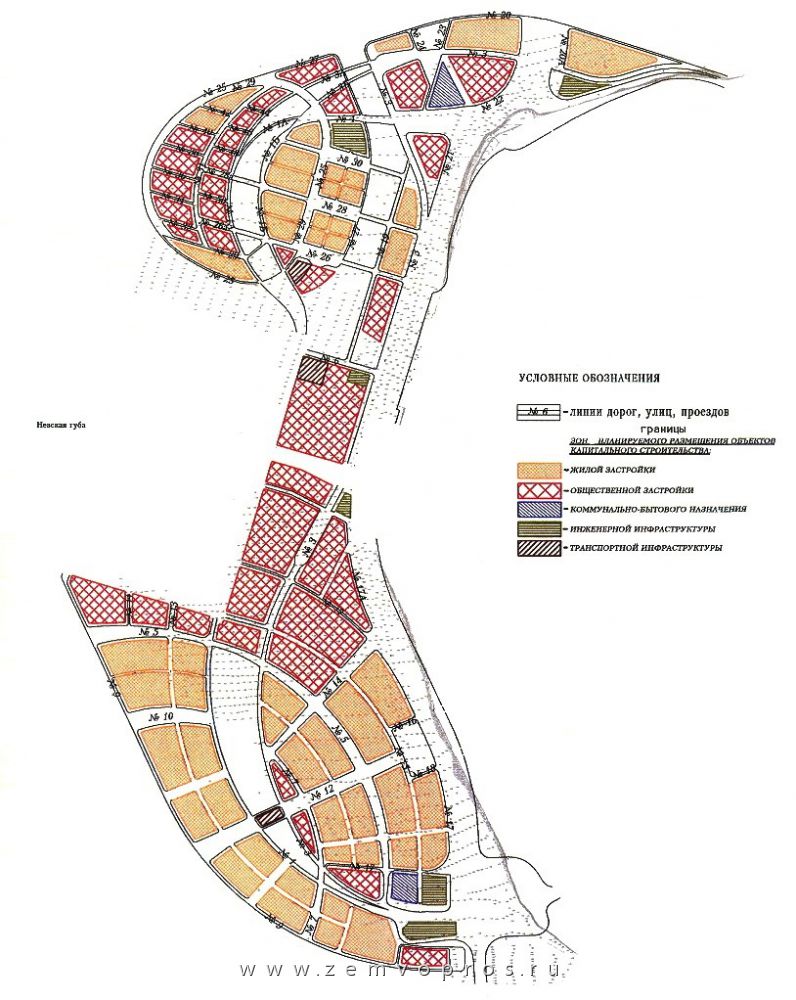 северный участок: на севере - акватория Невской губы Финского залива; на юге - северная граница квартала 1, магистраль N 1, магистраль N 2, магистраль N 3;