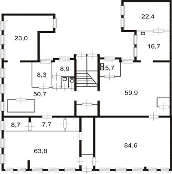 4. Окна 1-го этажа выходят на Вознесенский пр., окна в цокольном этаже - в сквер и во двор.