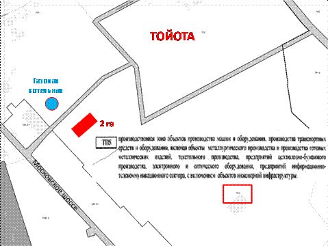 - В 300 метрах через дорогу на завод "Тойота" находится газовая котельная. Возможность подключения для обеспечения всеми видами инженерной инфраструктуры (газ для обеспечения теплом, электроэнергией, водоснабжением).
