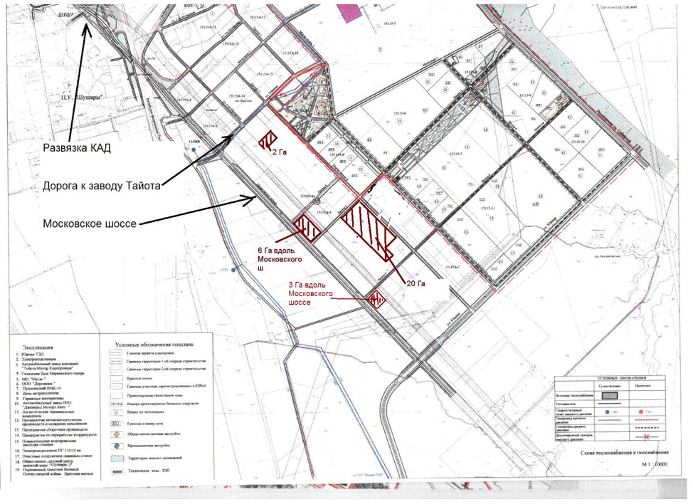 - Участок площадью 6 Га расположен напротив (через Московское шоссе) АЗС "АЭРО". Примыкает к Московскому шоссе.