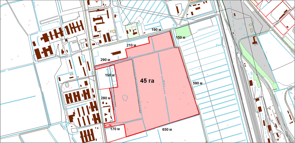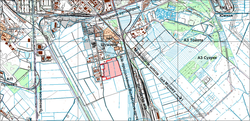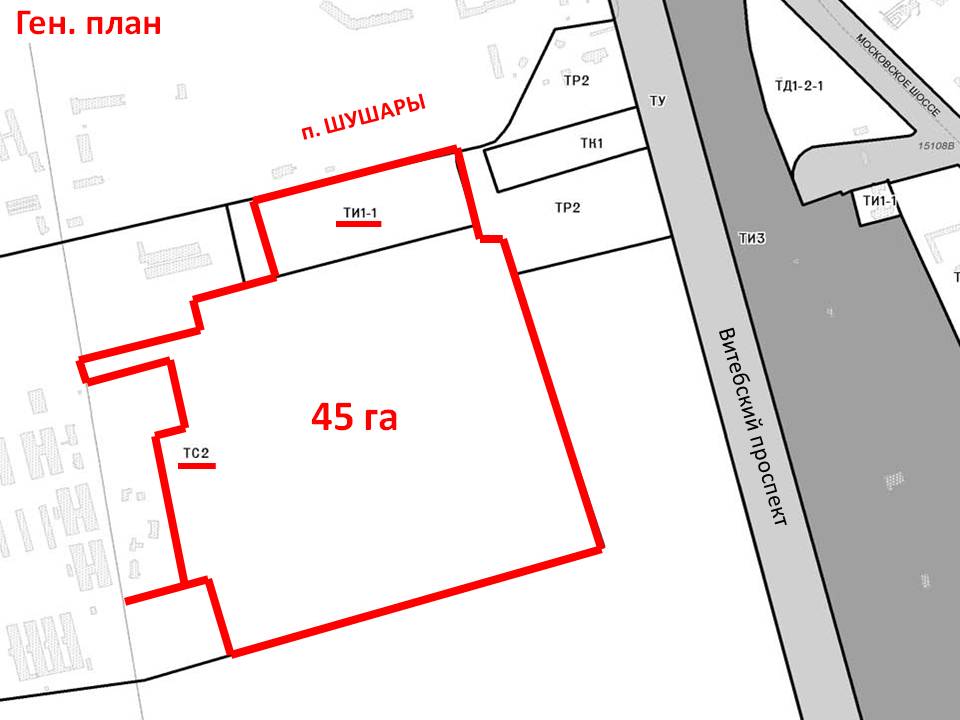 Земельный участок площадью 45 га в промышленной зоне "Шушары" в Санкт-Петербурге.