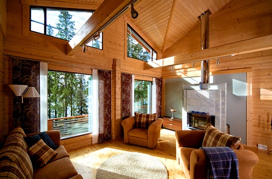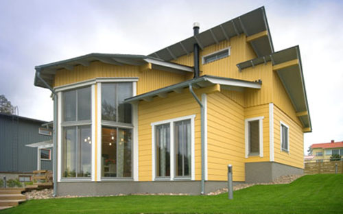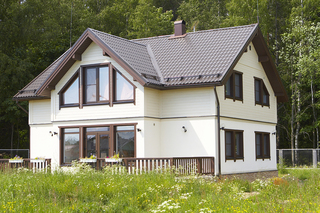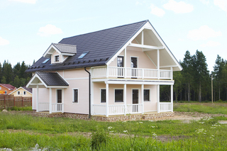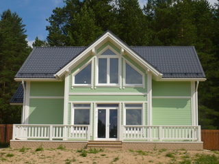 В последнее время большую популярность приобретает отделка вагонкой или "Bloc-House" , имитирующая брусовой или бревенчатый дом.