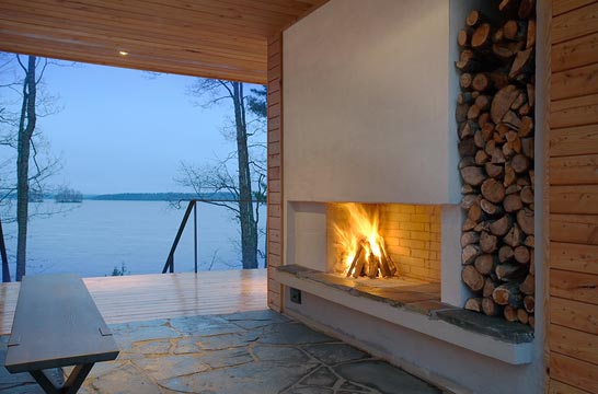 С внешней стороны производится отделка. В зависимости от пожелания заказчика для нее могут быть использованы любые современные отделочные материалы (сайдиг, отделочный кирпич,облицовочная плитка - клинкер, фасадная штукатурка).