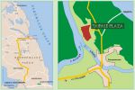 В 70 км от Санкт-Петербурга до посёлка Сосново по трассе Санкт-Петербург-Приозерск, далее - 15 км - от Сосново на пос. Запорожское.