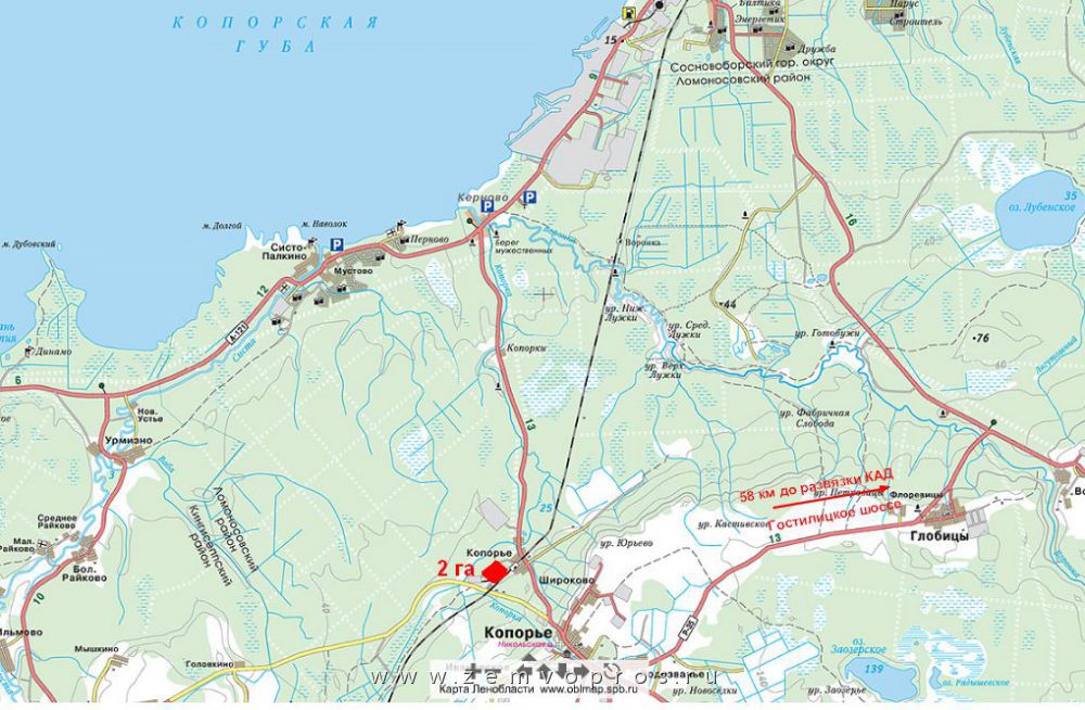 - Рядом с участком кольцевая трасса и железнодорожная ветка Усть-Луга-Санкт-Петербург.
