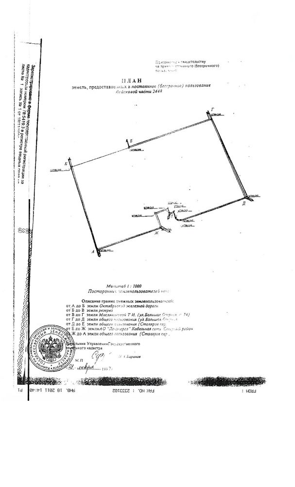 1. В данный момент на земельный участок оформляется право частной собственности на физическое лицо в Федеральной регистрационной палате по Санкт-Петербургу и Ленинградской области (на здание собственность получена).