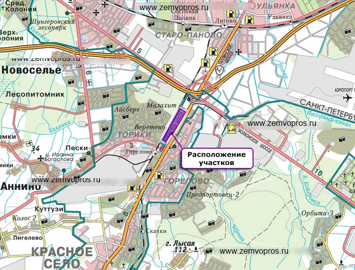 Земельные участки расположены на юго-западной границе Санкт-Петербурга и Ленинградской области, в непосредственной близости к развязке КАД с Таллинским и Волхонским шоссе.