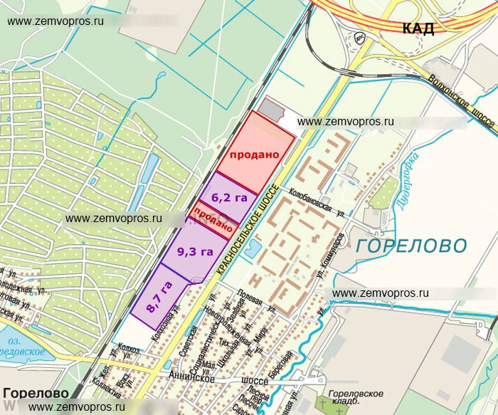 - Участки находятся в перспективной, динамично развивающейся торговой зоне посёлка Горелово.