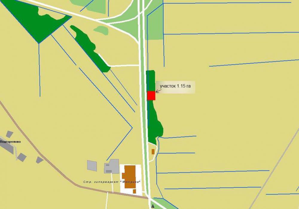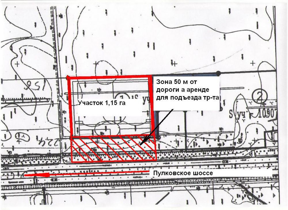 Земельный участок площадью 1.15 га на первой линии Пулковского шоссе для размещения объектов зоны общественно-деловой застройки (ОДЗ) и АЗС, АЗК и др.