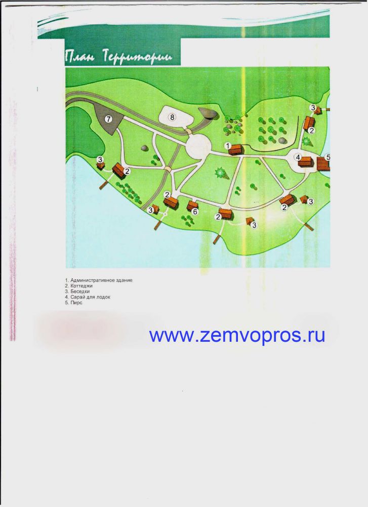 коттеджи для клиентов - 7 (5 из них расположены вдоль берега на расстоянии 25-40 от берега),