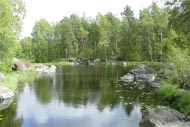 - База отдыха "Сосны" расположена на острове, соединённым с материком мостом.