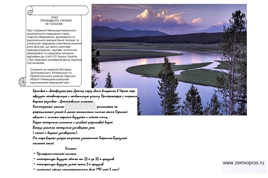 Инвестиционный проект будущего гостинично-рекреационнго комплекса или элитного коттеджного посёлка на земельном участке площадью 1 га в непосредственной близости к городу Белгород-Днестровскому на Днестровском лимане Чёрного моря.