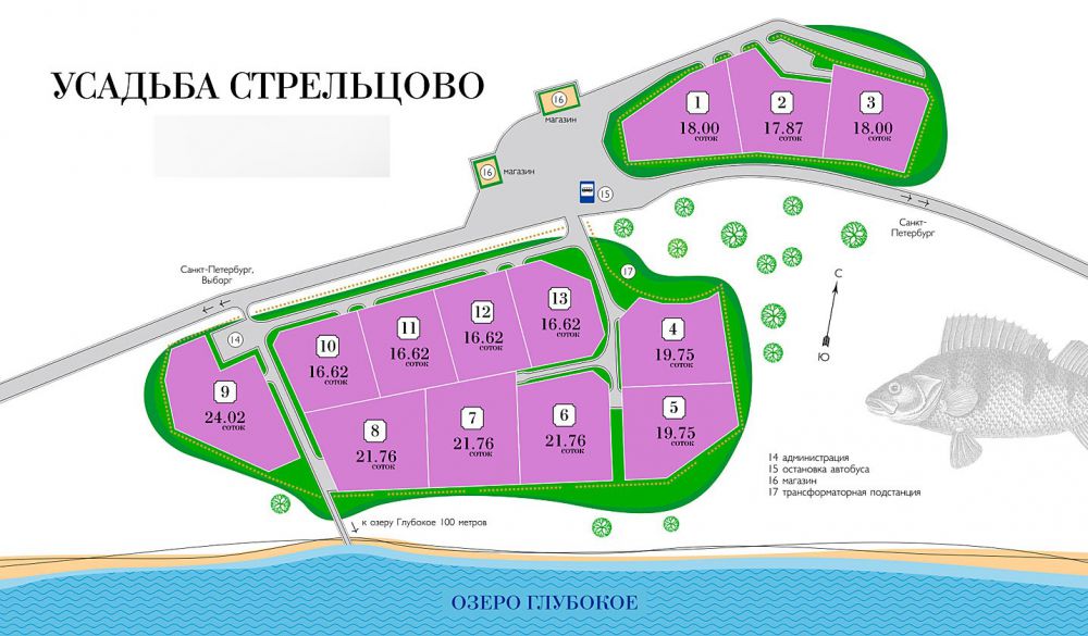 - Территория ДНП "Усадба Стрельцово" расположена на берегу озера Глубокое. 1-я линия. В 50 метрах от берега. Вид на озеро. Тропинка к озеру проходит по цветочной поляне и через красивый лес.