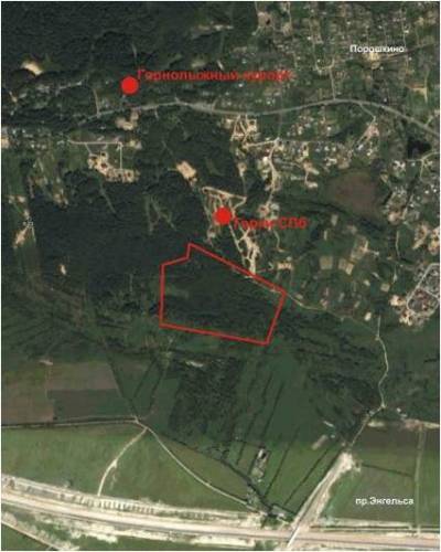 С севера участок примыкает к территории элитного коттеджного поселка «Горки Спб».