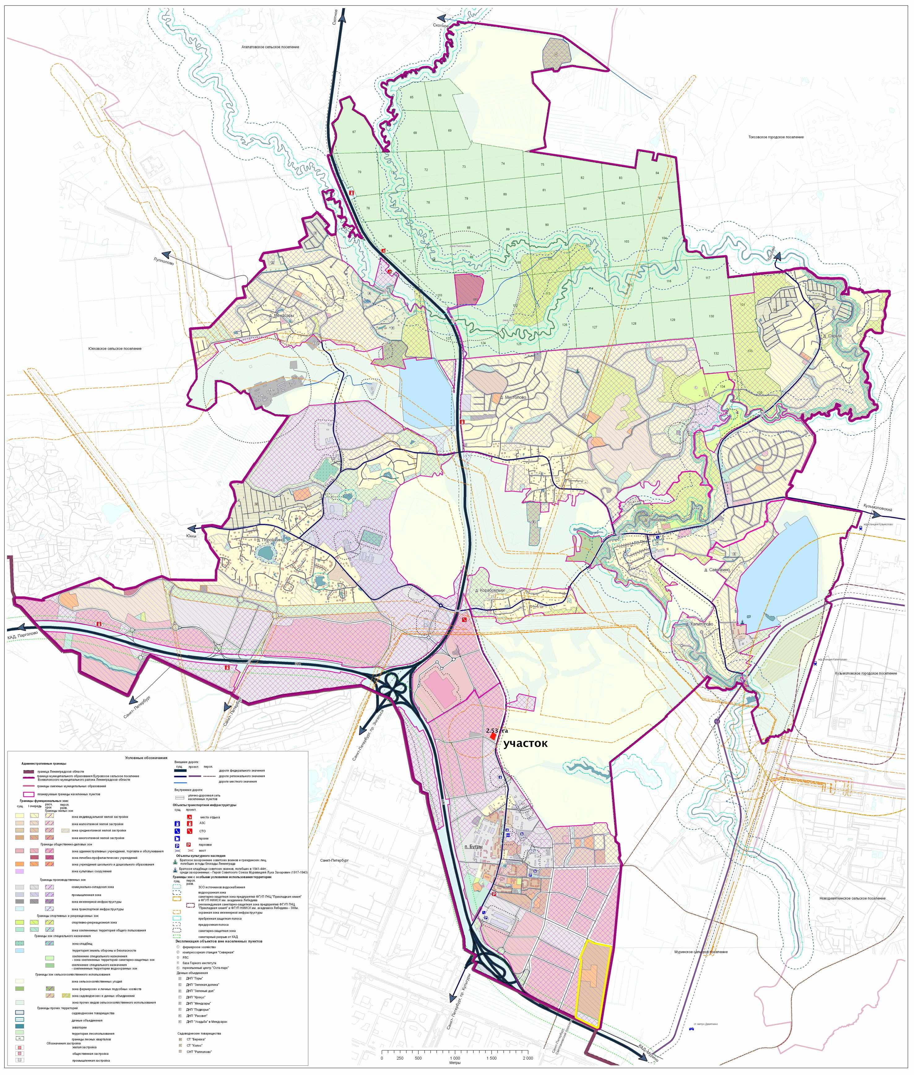 Земельный участок площадью 2.53 га для возможного коммерческого использования в общественно-деловой зоне (ОДЗ) посёлка Бугры.