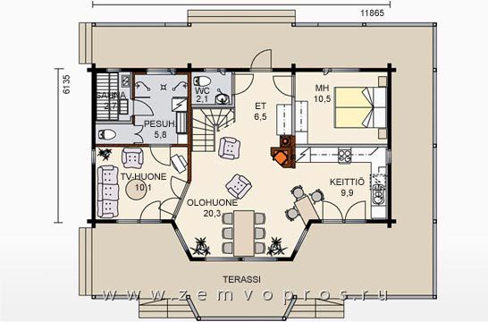 Дом из клееного бруса (200 мм) по финскому проекту (площадь - 122 м2 ):