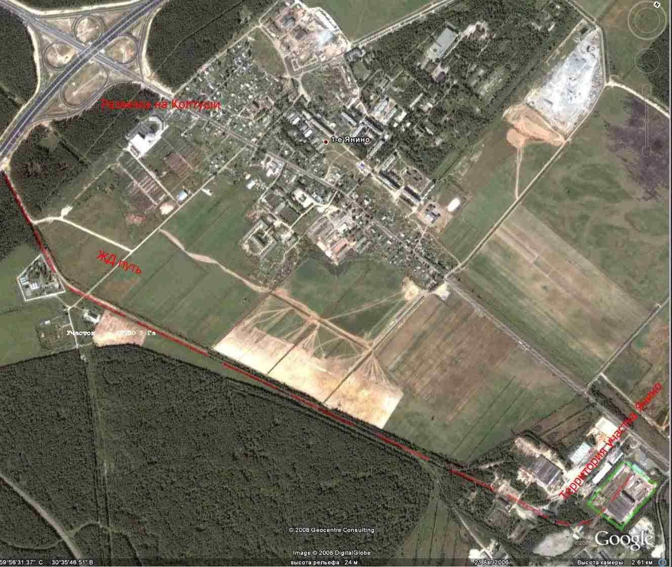 Земельный участок в зоне промназначения с железнодорожными путями вблизи КАД в Янино-1