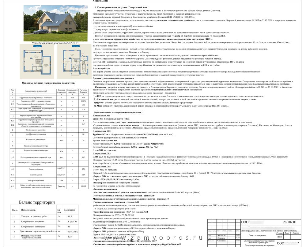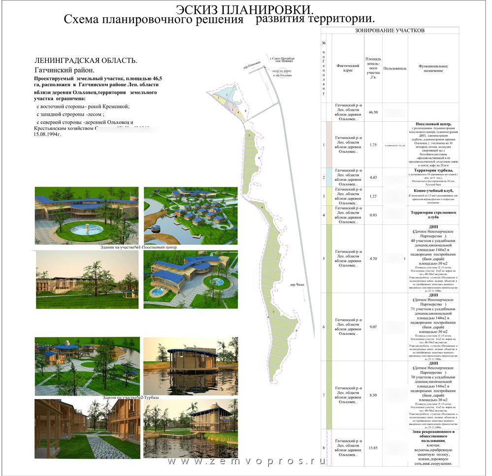 1) ДНП на территории участка, а для улучшения качества жизни в деревне Ольховец и для повышения статуса деревни до статуса поселка городского типа - предложено создать : Поселковый центр с гостиницей , поселковой администрацией, медпунктом ,аптекой, почтой ,магазином продовольственных и непродовольственных товаров.