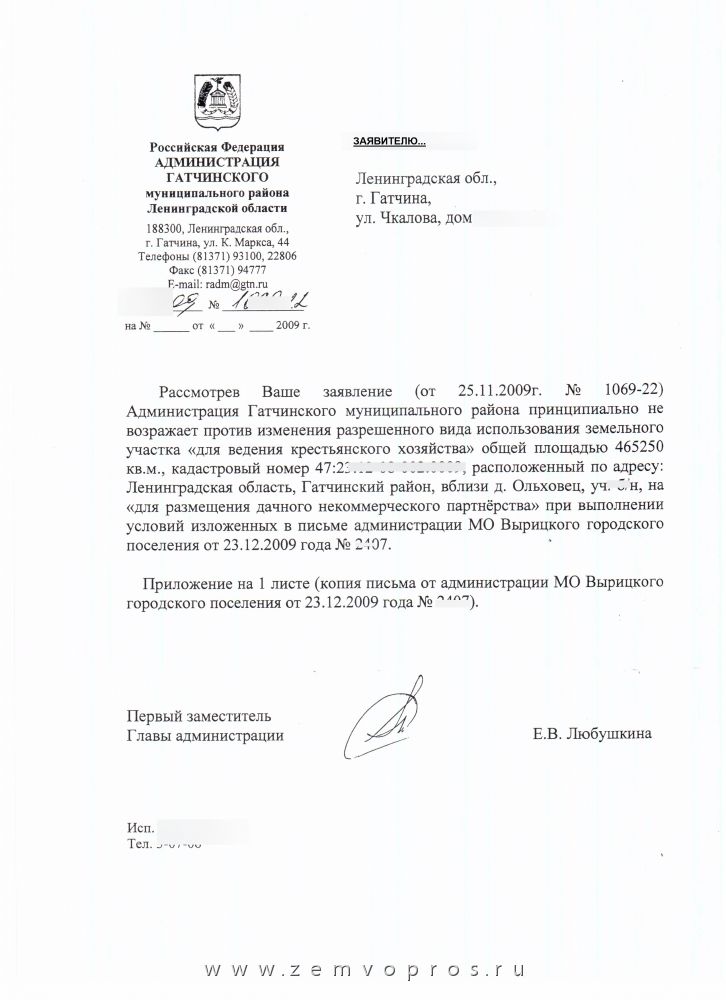В соответствии с письмом администрации сельского поселения по обращению собственника участка получена рекомендация изменить вид использования участка с вида «для ведения крестьянского хозяйства» на вид «для размещения дачного некомерческого партнерства (ДНП).