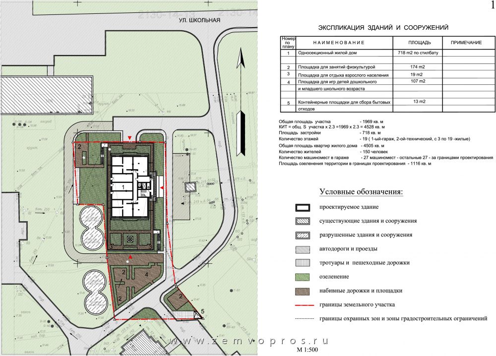- Разработан Генеральный план участка, предусматривающий строительство 19-ти этажного дома с паркингом.