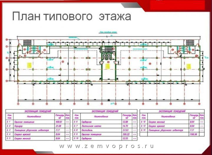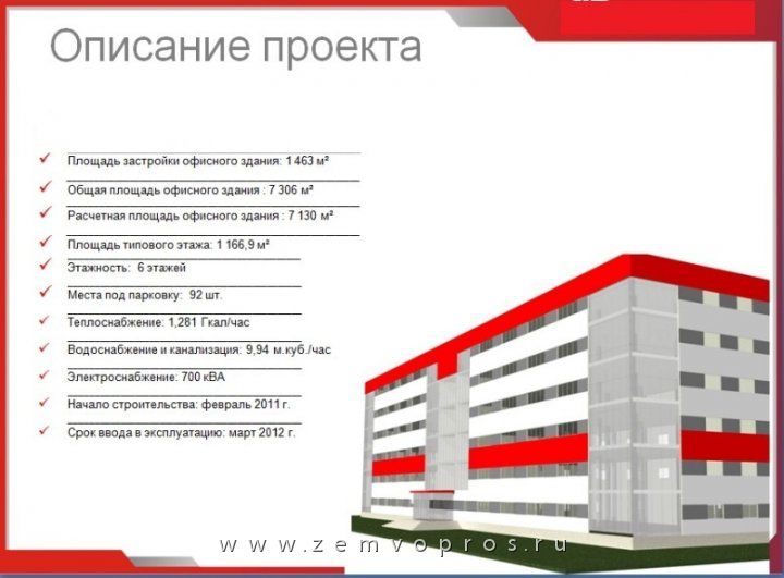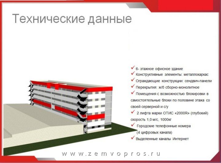 1. 6 этажное ОСЗ, БЦ класс В, площадь типового этажа 1167 м2.