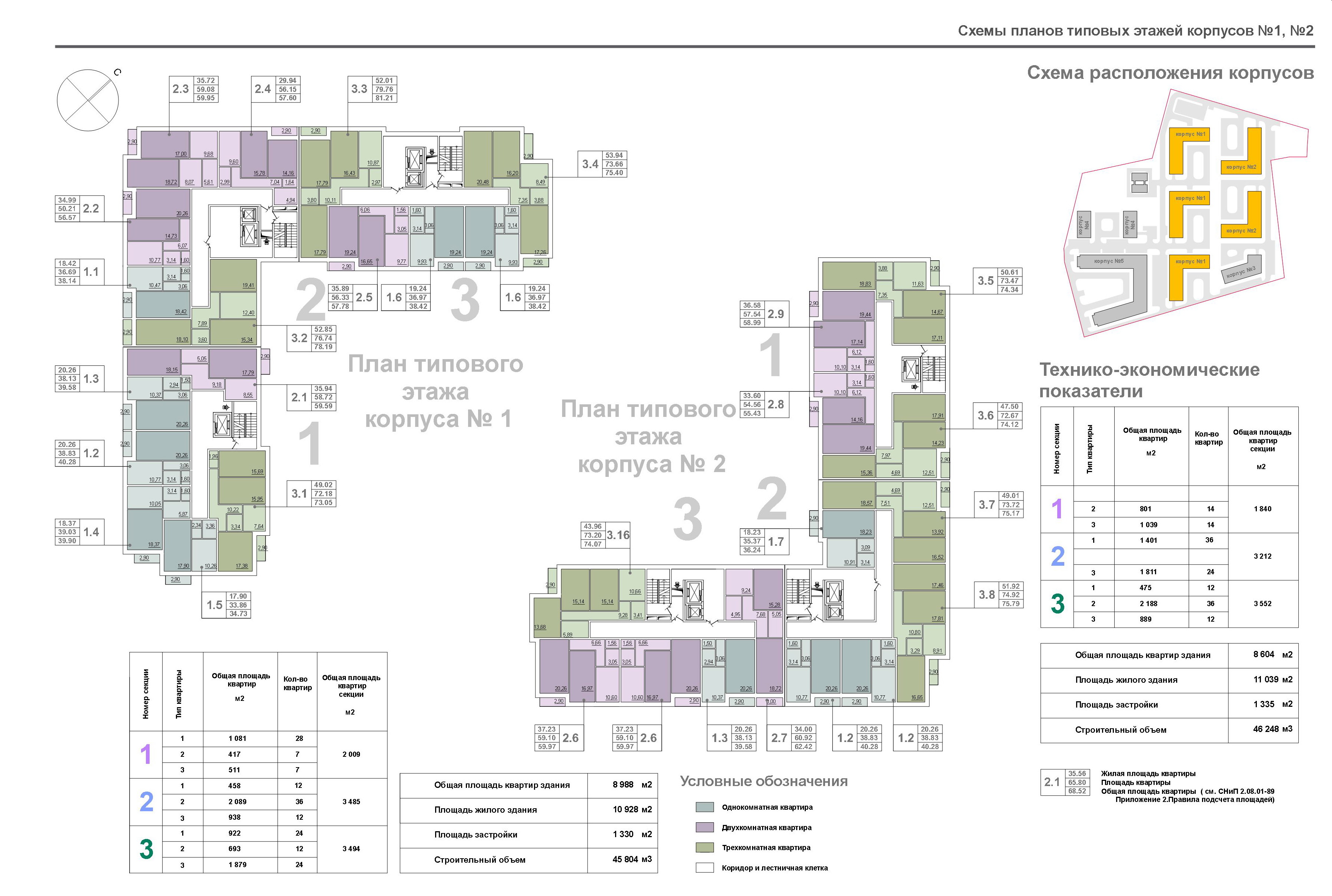 Здания в плане представляют собой прямоугольники (9 этаж. 2 шт),