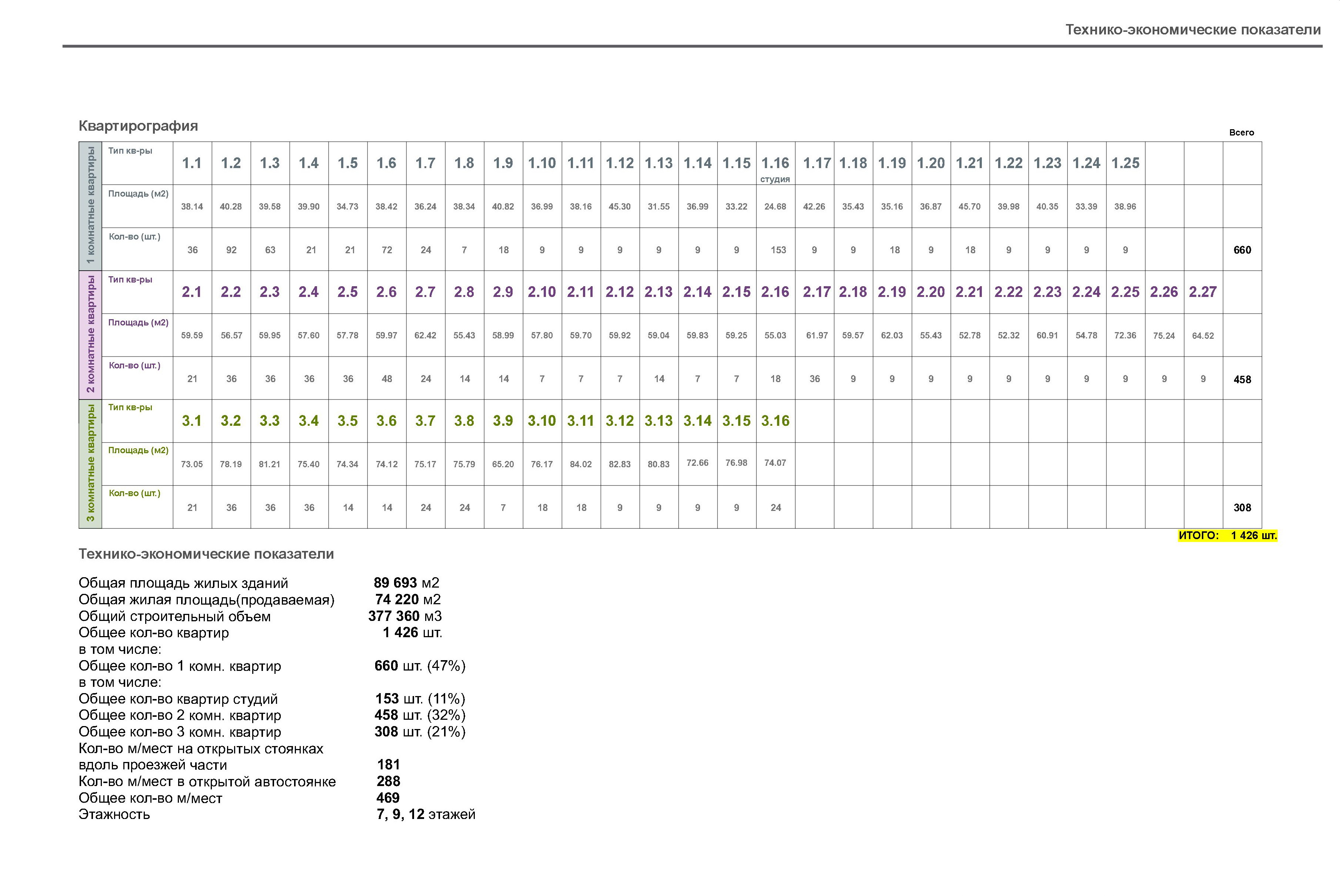 Общая жилая площадь (продаваемая) - 74 220 м2 .