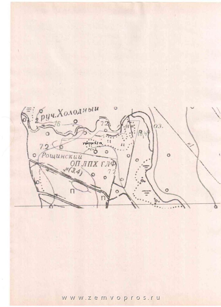 Земельный участок площадью 9 7008 м2 (9.7 га)для ведения крестьянского хозяйства вблизи озера Александровское и ручья Холодный у деревни Мамонтовка .